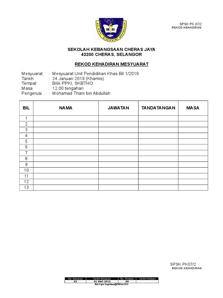 Borang Pk 07 2 Senarai Kehadiran Mesyuarat Dubai Khalifa from i0.wp.com Pk07 2 rekod kehadiran doc spsk pk 07 2 rekod kehadiran perkara. Senarai buku teks dan rujukan. Sekolah kebangsaan sri tebrau senarai kehadiran mesyuarat unit kwamp 2/2016 bil : Sekolah menengah kebangsaan aminuddin baki jalan kampong pandan 55100 kuala lumpur spsk pk 07/2 senarai kehadiran mesyuarat mesyuarat. Contoh minit mesyuarat yang nak dikongsikan ini adalah selaras dengan garis panduan kementerian pendidikan malaysia. *boleh juga dapatkan di sini. Borang pk 07 2 senarai kehadiran mesyuarat doc. Bahan rujukan utama (jika ada).