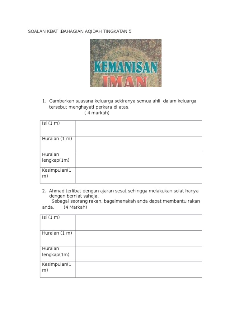 P Islam Soalan Akidah K1 T5 Ajaran Sesat Pdf Document from cdn.vdocuments.mx Mengiktiraf, mengakui dan membenarkan sesuatu tanpa. Inilah kesan atau implikasi ajaran sesat terhadap individu. Selamat kembali ke sekolah, 768 pelajar tingkatan lima smk meru, klang mulakan persekolahan hari ini. Start studying akidah tingkatan 5. Pendidikan islam, talak, tingkatan 5, tugasan. Nota tambahan untuk akidah ahli sunnah wal jamaah (akidah). Sejarah tingkatan 3 bab 5 pentadbiran barat di sarawak dan sabah. Soalan, nota, bahan rujukan penting semua subjek.