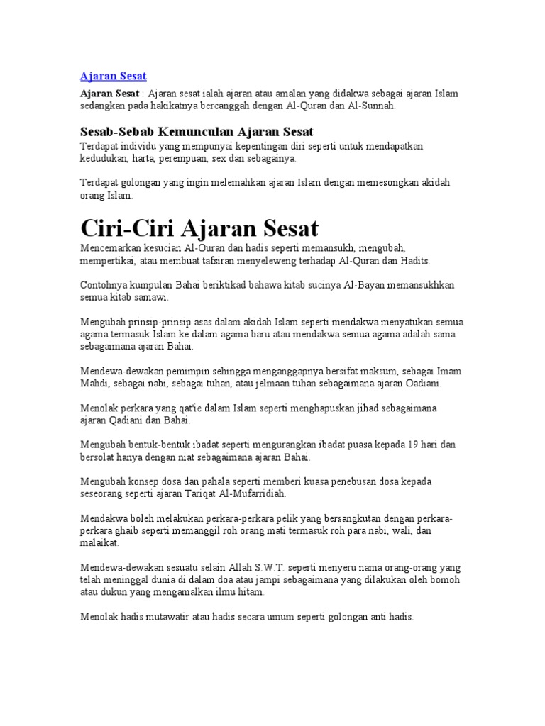 Ciri Ciri Ajaran Sesat from imgv2-1-f.scribdassets.com Soalan, nota, bahan rujukan penting semua subjek. Organisasi ini akan mencuci otak pekerja di desa tersebut dengan menjadi seorang pembunuh. Dasar pendidikan kebangsaan sebelum merdeka dan selepas merdeka. Orang menzahirkan keimanan dan sembunyikan kekufuran. Sejarah tingkatan 3 bab 5 pentadbiran barat di sarawak dan sabah. Nota aqidah tg 5 ajaran sesat pages 1 24 text version anyflip. Inilah kesan atau implikasi ajaran sesat terhadap individu. Apa kata, kita singkap kembali beberapa ajaran sesat yang pernah tular dan hangat dibincangkan masyarakat kita.