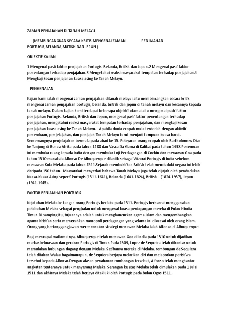 Read this essay on penjajahan inggeris di tanah melayu. Penjajahan kuasa barat di tanah melayu. Mata wang emas , perak dan timah digunakan. video menyingkap kisah kenangan & pengalaman pada zaman perang yang bersejarah : March 17, 2016, 2:01 a.m.